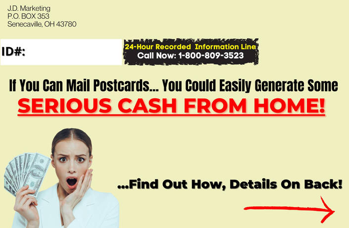 2 Ways To Join by Mail or OnlineTo join by mail, simply CLICK HERE and print out the form and follow the directions on it and Mail It back to JD Marketing with your $ 50.00 Startup Fee by Cash or Money Order to get your Starter kit containing your Initial 200 Postcards, 200 Leads and other needed company materials.To** join online** by credit or debit card, via PayPal, CLICK HERE to visit the JD Marketing website and enter all your information and make sure to use ID# 1498 and hit the submit button and then after that click on the Buy Now button and checkout, to get your Starter kit mailed to you containing your Initial 200 Postcards, 200 Leads and other needed company materials, it's as simple as that, so join right now!